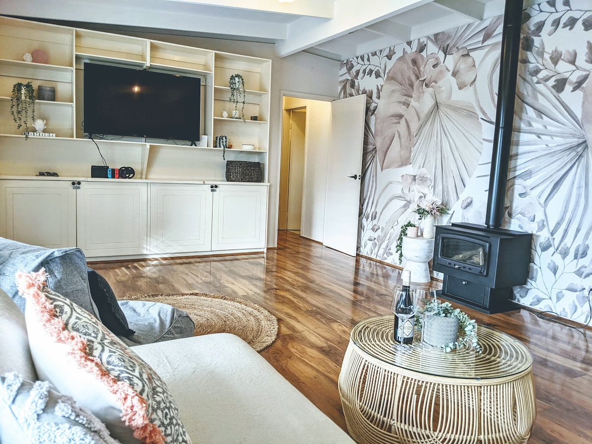 Indulge - Private Couples retreat is an inviting free-standing townhouse in the heart of Mornington. Luxurious King Bed awaits you and your guest. Featuring a radiant gas log fireplace operated by remote with 87cm Smart TV above. Alfresco courtyard with double spa bath, outdoor heater & zip track blinds that can be open or closed; up to you to decide! Upstairs you find the master bedroom and a marbled bathroom with double shower and a massage recliner chair for ultimate relaxation.