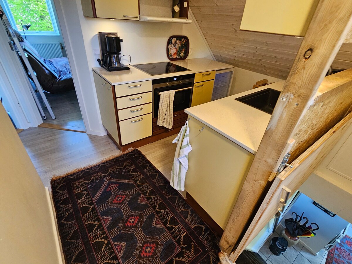 Welcome to our farm! A stone's throw from a cozy residential area, the farm is located on a private road with meadows all around. Your accommodation is located at the end of a beautifully converted old barn. A rustic apartment on two floors with charm! The accommodation is located in a secluded place in the northwestern part of the farm where you can enjoy the evening sun on a private patio overlooking horse pastures. Just about 500 meters from the property, you will find long beaches and a beach promenade! Bus stop about 200 meters away.
