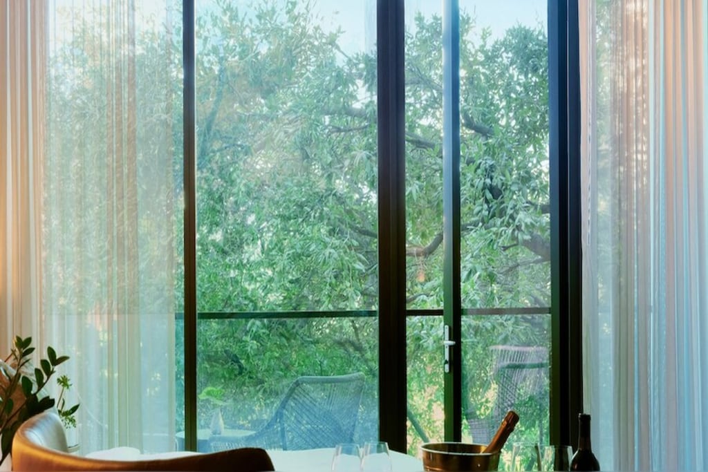 Deluxe room grounds view offers one of Austins largest standard spaces, with relaxing outlooks and thoughtful touches for work and rest. Enjoy Samsung 48 inch smart LED web TV with streaming services, luxury towels, bed linen and bathrobe, stone and glass walk in shower, Nespresso machine, ultra high speed wifi, beverage cooler, microwave, and work desk and chair.