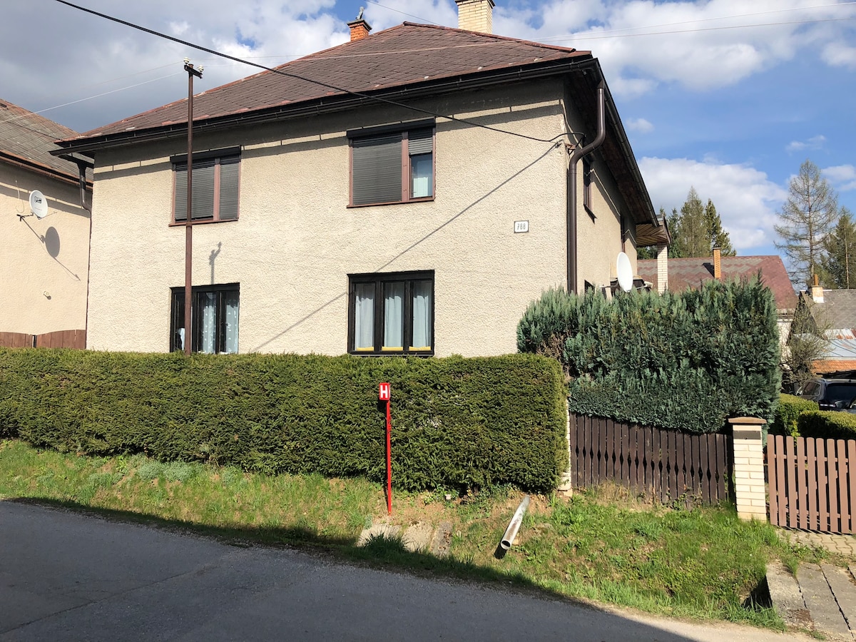 Relax in a quiet house with your family. The house is located in the village of Hranovnica, which is located halfway between the Tatras and the Slovak Paradise. The house has a bedroom with a double bed and the possibility of an extra bed, where 3 people can sleep comfortably. In the other room, there is a living room with a sofa bed, where 2 people can sleep. The house has a spacious and fully equipped kitchen. The house includes a bathroom with a shower and a toilet. Possibility of a pleasant outdoor seating in the yard.