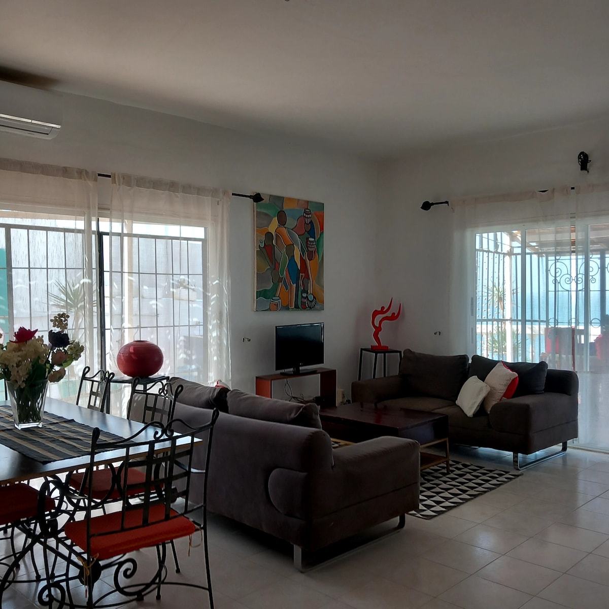 Beautiful, spacious, air-conditioned villa with above-ground pool, In a village between the city and the countryside Located 30 minutes from Blaise Diagne Airport (11 kilometers) 5-minute walk to beach Shops nearby (pharmacy, bakery) Auchan 12 kilometers away Dakar city center is 30 kilometers away To visit: Lac Rose 40 kilometers from the house The turtle village 27 kilometers away, Saly 42 kilometers away Bandia Reserve 42 kilometers away