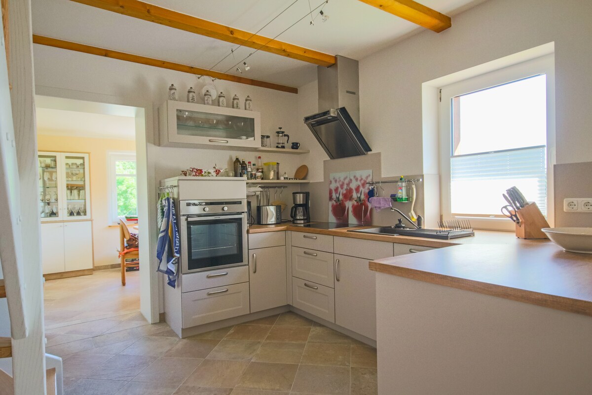 The half of the vacation home is in the small district of Zaase surrounded by meadows and fields. The newly furnished apartment and the cozy terrace invite you to relax or have cozy barbecue evenings. The property is connected with a bike path to the ports of Schaprode and Wittower Fähre. A riding stable is close by. Many interesting excursion destinations are only a few kilometers away, such as the island of Hiddensee. Beaches and restaurants are within easy reach.