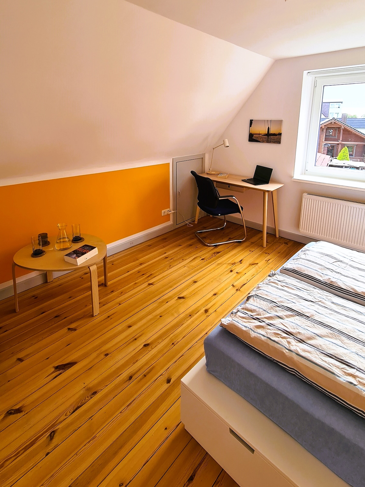 Welcome to our cozy accommodation, the vacation apartment Villa No.8. The comfortable box spring bed invites you to linger. The modern shower room with rain shower and wellness seat completes the relaxation. The well-equipped kitchenette allows self-catering, if desired :) The train station towards Kiel/Hamburg is only about 100 meters away, from there numerous shopping, cultural and gastronomic offers are directly accessible ❤️