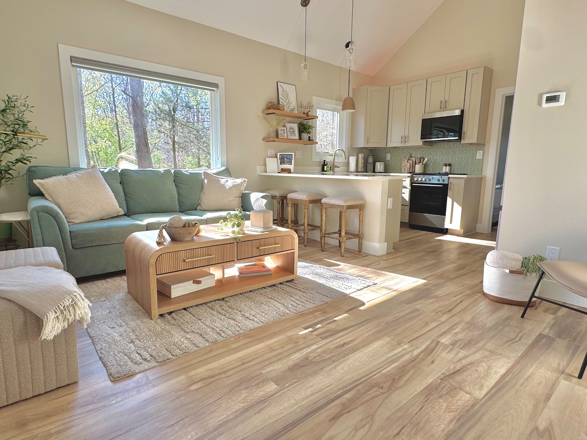 Visit TIEC (5mi) and NC foothills in a modern and cozy studio that sleeps up to 3 adults (or 2 adults and 2 children). The cottage features a recently renovated interior with queen bed, sleeper sofa, luxury linens, well equipped full size kitchen & laundry. Private fenced yard with sitting area, chiminea, and gas grill. Super fast, reliable wifi perfect for working or streaming your favorite shows. Centrally located, 5 miles to TIEC. Close to many wineries, hiking, and antique shops.