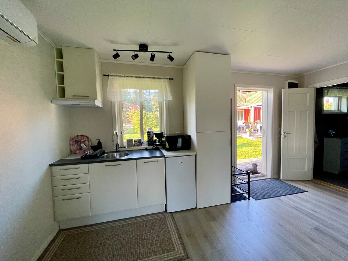 Here you will find tranquility, the forest and nature right at your doorstep and here you have the opportunity to stay about 10 meters from the water and the Göta Canal. A totally unique location for swimming, sun (hopefully), resting and opportunities for beautiful nature. Watch the boats pass just outside your window. - Small but well-equipped kitchen. - 3 separate bedrooms, one with a double bed and two with a single bed. - Extra sofa bed in the living room. - Newly installed air/air pump ensures an even temperature indoors. - TV with Fiber connection.