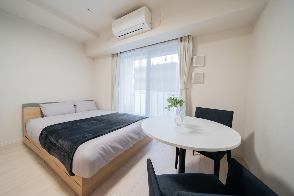 - Neiju Apartment Hotel- This is a one-floor private 1R (53 ㎡) on the 3rd floor of a 4-story apartment hotel in Honmachi, Nakano-ku. It can accommodate up to 6 people, ideal for family and friends. The interior is unified with a calm interior, and the terrace overlooks the lush park. Free WiFi and a kitchen are also available, making it comfortable for short-term stays as well as workcations and mid- to long-term stays. The neighborhood is a calm residential neighborhood, but Shinjuku Station is about 20 minutes by train and has good access to the city center. From the nearest station, Nakano Fujimicho Station, it is also easy to travel to sightseeing and business. There are also supermarkets, convenience stores, and cafes nearby, so you can balance the convenience and tranquility of the city. There are also sightseeing spots such as "Nakano Broadway" and "Philodo Park" a few stops away by train, making it a convenient base for sightseeing. This is the perfect room for those who want to enjoy the balance between nature and the city. Enjoy a stylish and comfortable stay with your family or friends. ■ Access 5 min walk from Tokyo Metro Marunouchi Line "Nakano Fujimicho" station