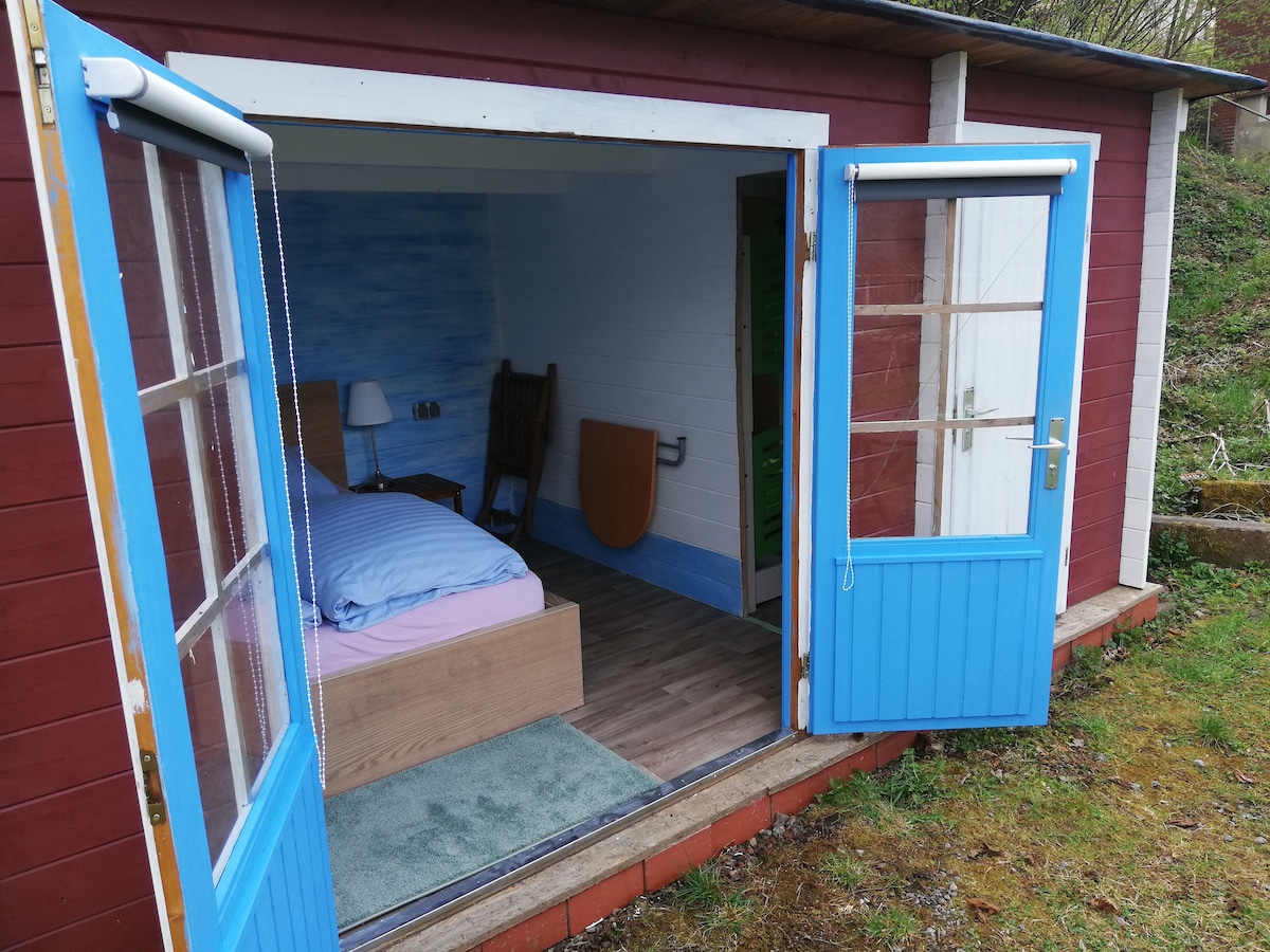 Enjoy the view from the tiny house terrace over the forests and mountains of the Weserbergland. Relax to the sounds of nature in the bathtub. Follow your dreams while swinging in the hanging chair in front of the tree backdrop. Our tiny house has a tree house character due to the elevated location and the immediately adjacent trees and is magically located on the edge of the forest.