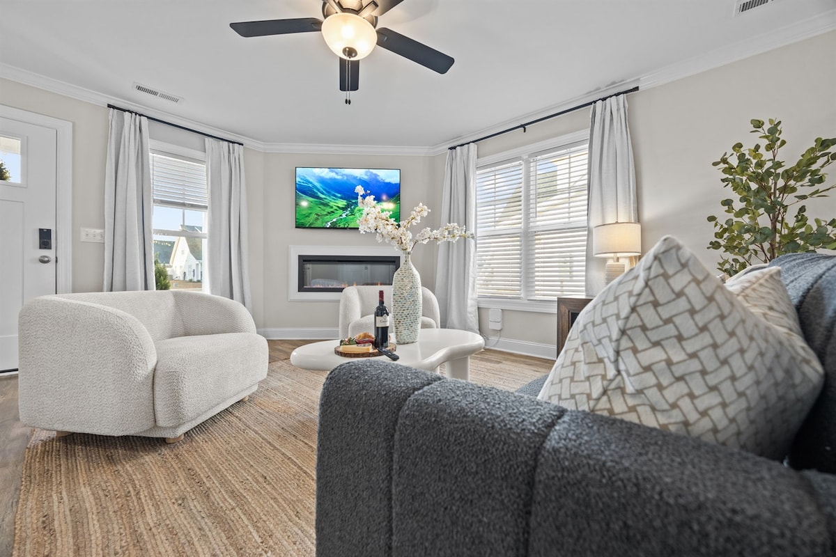 Enjoy a stylish and relaxing experience at this centrally-located home. Single story end unit in a small quiet complex just minutes from great restaurants , shopping , ECU , downtown or Vidant. (Under 2 miles to ECU!) Master bedroom with King bed and large en-suite with double sinks. Second bedroom with queen bed. Smart TVs in both bedrooms and living with streaming apps , living room tv can also access all major channels via YouTube tv with our log in .