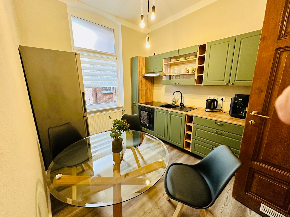 Welcome to the Halloren Suite in the heart of Halle (Saale) city center! This stylishly furnished suite combines historic charm with modern comfort and offers everything you need for a relaxing stay: → King-size bed for a restful sleep → Smart TV & comfortable seating areas → Free high-speed Wi-Fi → Private parking included → Fully equipped kitchen with coffee maker and dishwasher → Bathroom with bathtub and shower → Private washing machine - for longer stays :) → Private balcony for relaxing