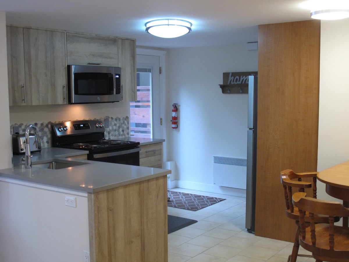 Lovely walk in walk out with private entrance, 500sqf one bedroom guest suite with 9 foot ceilings is bright and airy. This self contained one bedroom suite offers privacy and easy access. If you like cooking your own meals we have a mature herbs on the pathway to the suite that you are welcome to pick from for your meals. We provide coffee/tea/sugar/milk/yogurt/fresh fruit/museli/granola to ensure you have what you need for breakfast the day of arrival. We have a two night minimum stay.