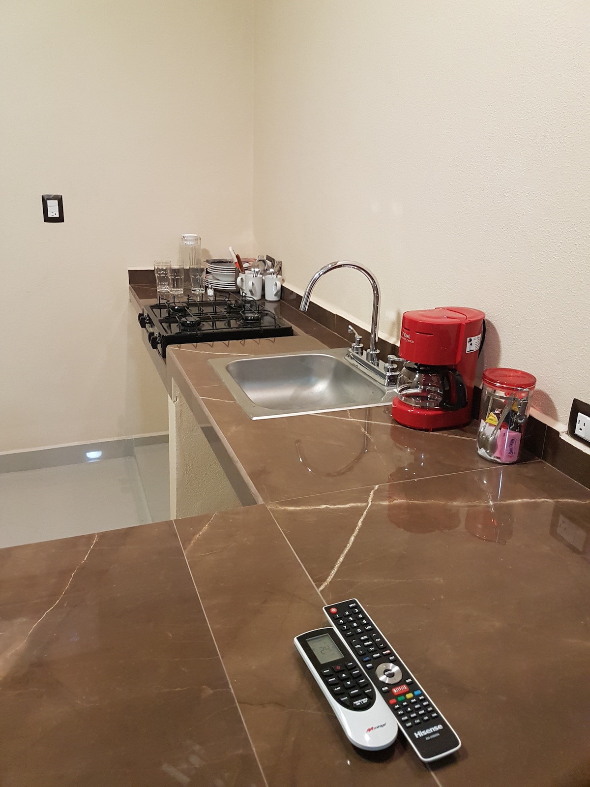 The decoration is simple, just what is necessary for a hotel-type room, about 2 blocks away there is a church, there are several restaurants (it is in the center of Sabinas Hidalgo) and several corner shops including oxxos nearby.