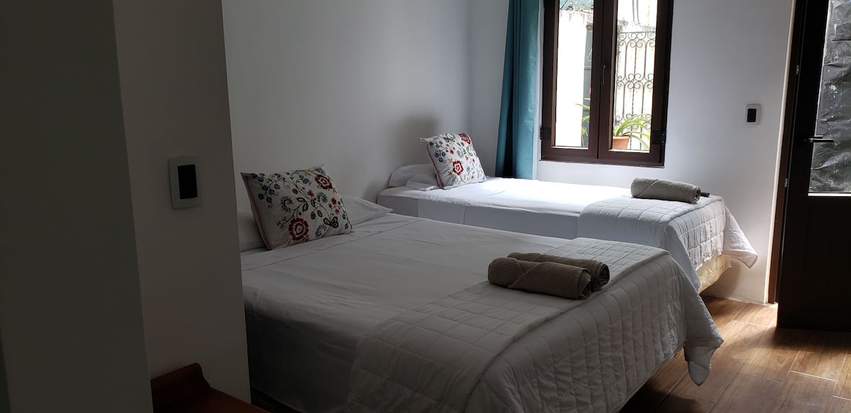 A beautiful upstairs private apartment in our villa with your own bathroom and kitchen - a sunroom & a beautiful volcano view from the dining room. We offer long term up to six months. Ask for details Walking distance to parque central, Mercado, & other main attractions in Antigua. Perfect place to work from home as we offer high speed WiFi.