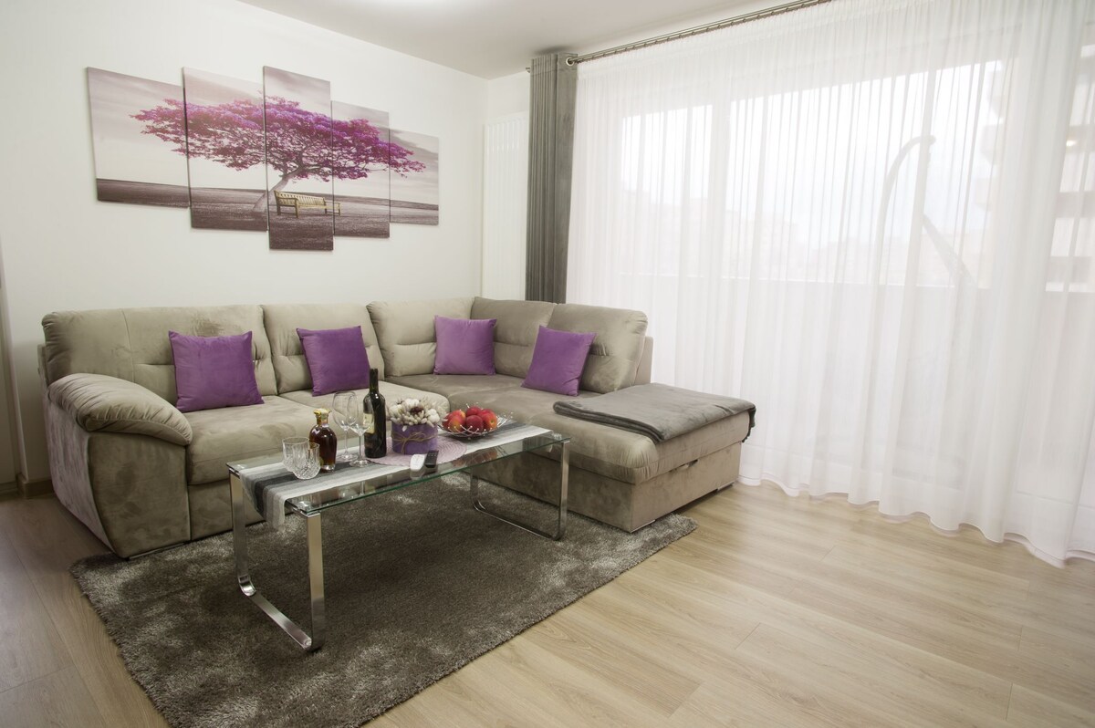 This is the perfect place to stay in if you travel for either business or holidays. The rooms are beautifully furnished and extremely comfortable. The apartment is situated in a quiet area and it takes only a 5 min walk to the train and bus stations, 30 min with the car to the Dracula Castle and 20 min to Poiana Brasov. Please note that we can also provide transport service upon availability. Assuring you of our best services at all times, we are looking forward to welcoming you!