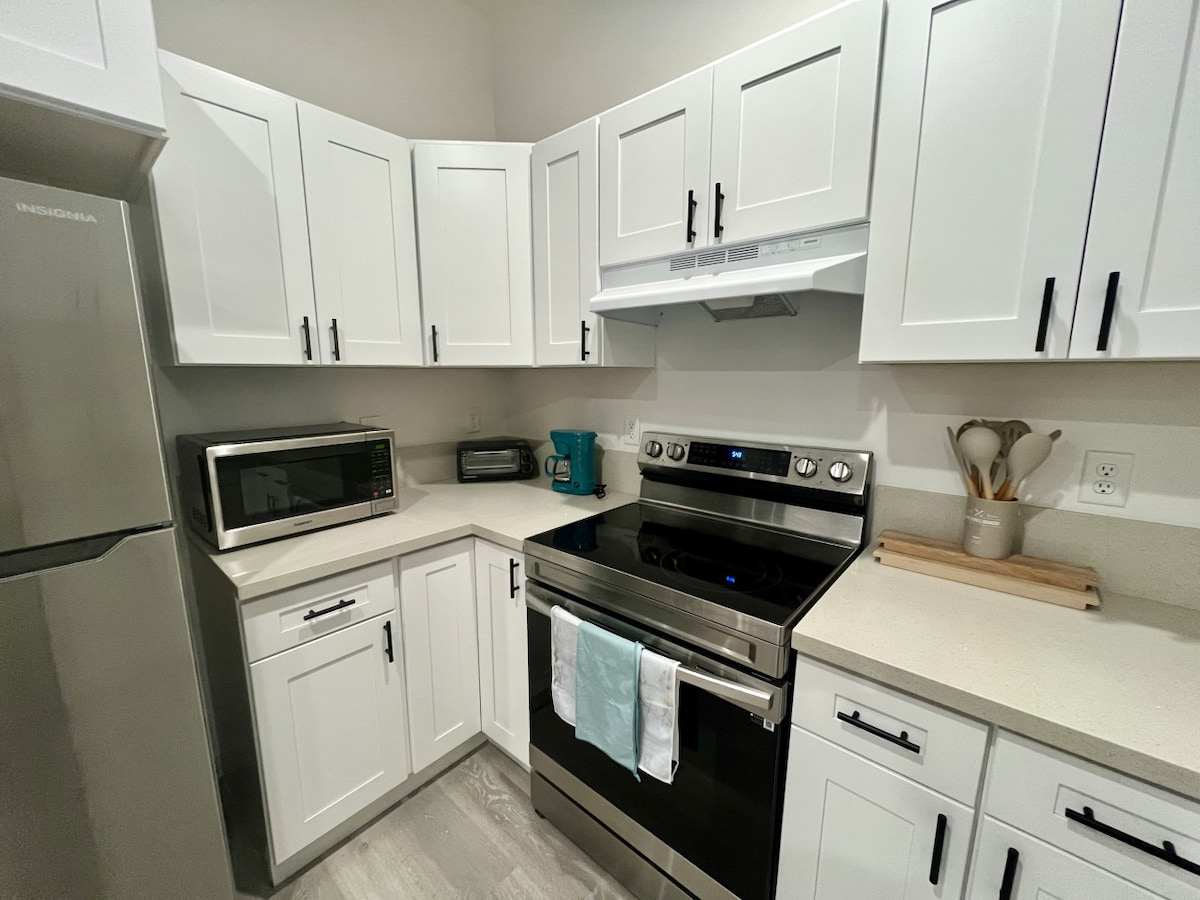 This stylish newly renovated 1 BR in-law unit has anything you need to feel at home. Enjoy a king bed, 55" smart TV, cozy nook with a twin bed, washer/dryer, level 2 EV charger, garden with flowers, vegetables and fruit trees. Fully equipped kitchenette and dining space. Close to midtown, downtown, Golden One, Cal Expo, Discovery Park, shopping, restaurants, freeway and light-rail. Near numerous hospitals. Baby gear available. Hiking & river access nearby. Day trips to SF, Tahoe, Napa & more.