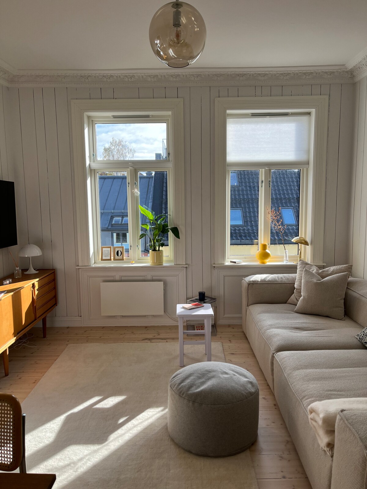 Cozy, high standard and airy apartment in a quiet and idyllic area right by Torshov park. 2 minutes to tram and bus, and 10-15 minutes by public transport to the city center. Possibility to use facilities such as tables, chairs and playgrounds in an idyllic backyard. Many nice cafes, restaurants and bars in the immediate vicinity of Torshov.