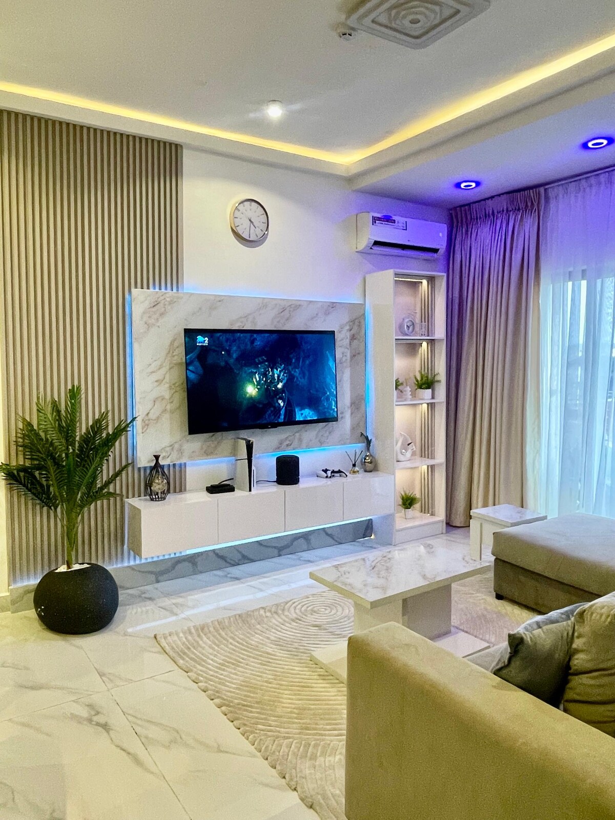 Welcome to your serene high-rise escape in the heart of Victoria Island. This modern and stylish 2-bedroom apartment sits on the 5th floor of a 7-storey building, offering distant ocean views, refreshing ocean breeze, and calming city lights at night. Designed with a minimalist yet luxurious feel, the apartment is perfect for: • Business travelers • Couples • Solo adventurers • Small groups seeking comfort and privacy Everything you need for a relaxing and productive stay