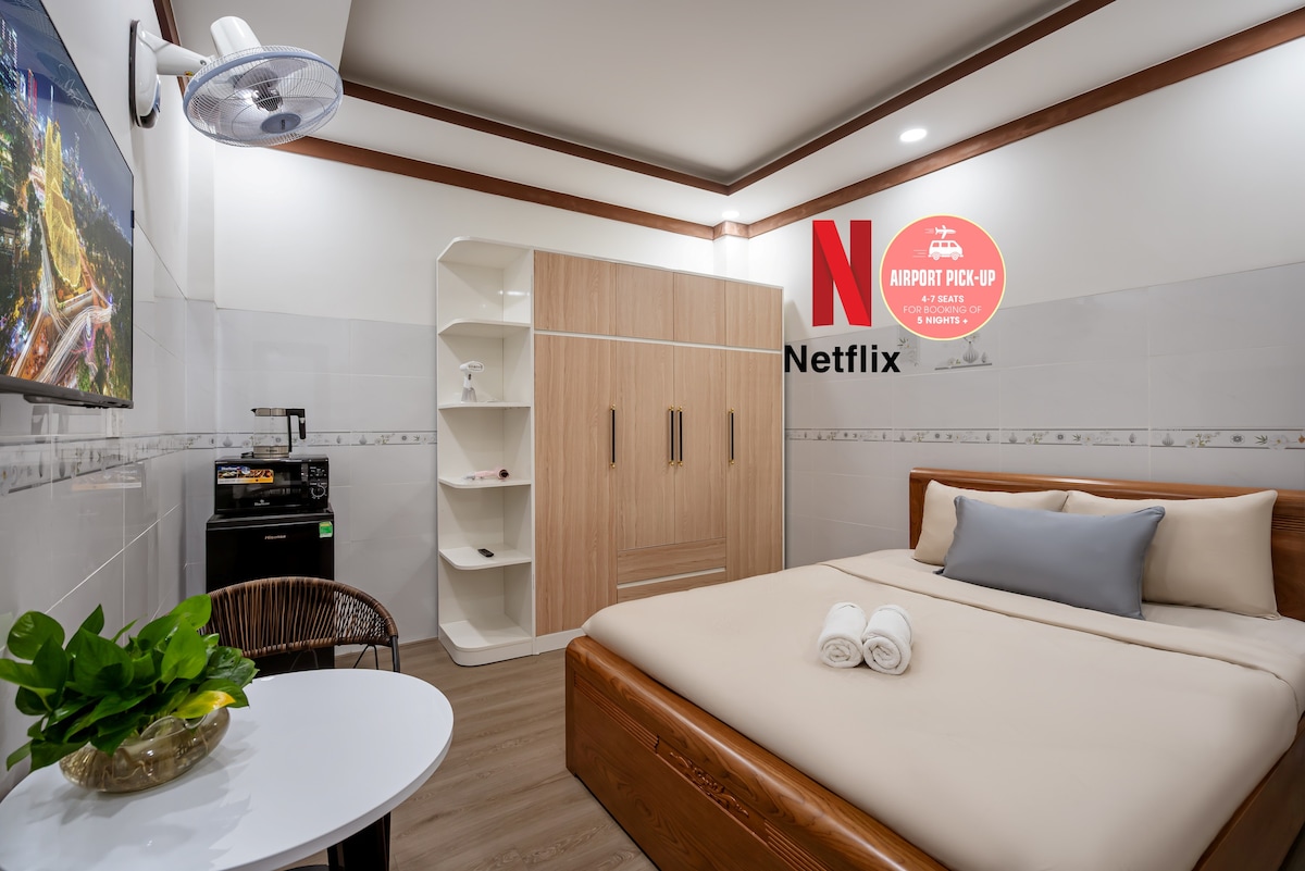 Located in the heart of Saigon, Chilli & Chum Apartment is just 800 meters from Bui Vien night Street, 1.5 km from Ben Thanh Market, making it easy to explore the city. Each apartment offers high-speed Wi-Fi, 2.0 HP A/C, a smart TV with Netflix, kitchen, microwave, and more. Rooms feature large windows or balconies for natural light and fresh air. The private bathrooms include rain showers, water heaters, and basic toiletries. Stay close to Saigon’s top attractions — all just minutes away.