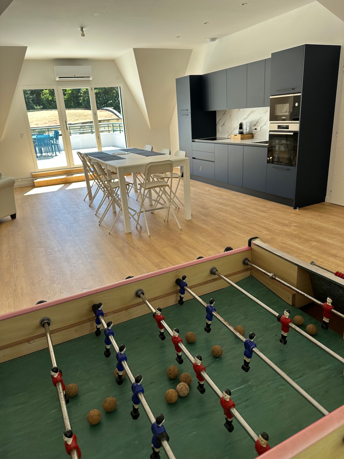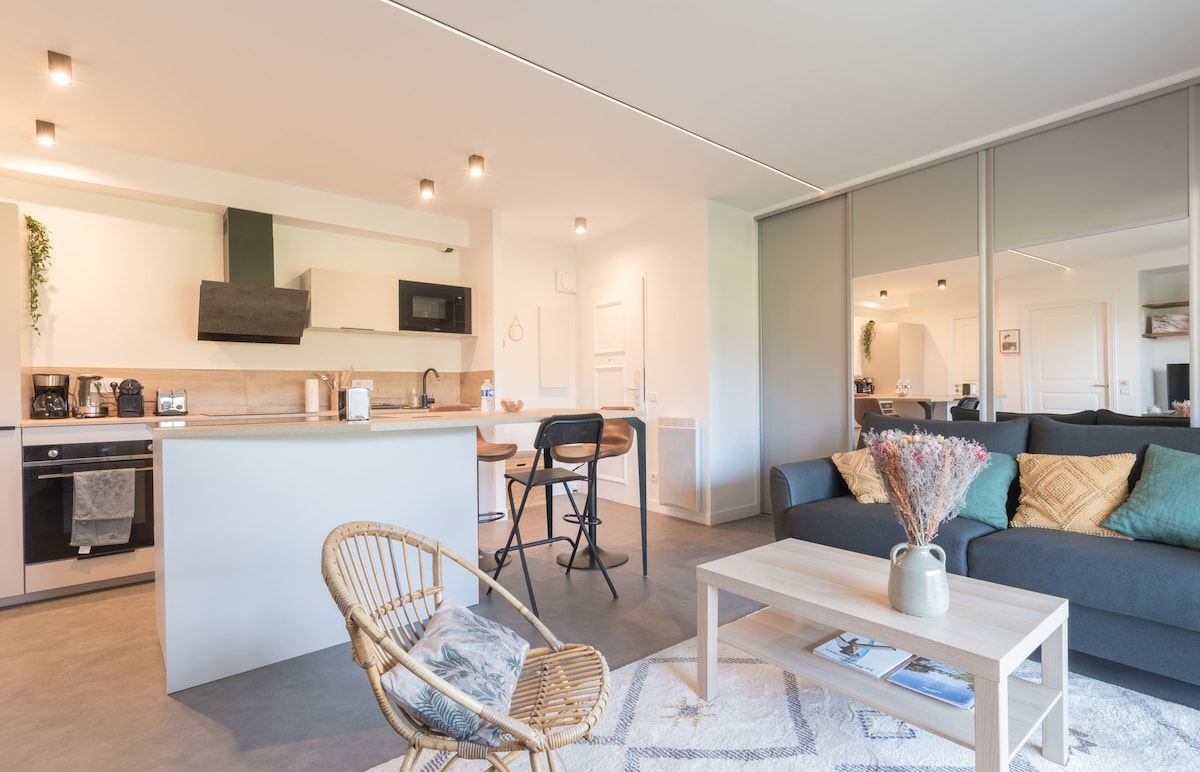 Cozy apartment with golf course view – 10 min from La Baule Enjoy a peaceful stay in this bright apartment with terrace and stunning views of the golf course. Located in Saint-André-des-Eaux, 10 min from the beaches of La Baule. 1 bedroom (bed 160x200) + sofa bed, equipped kitchen, home cinema, desk area, high-speed WiFi, free parking. Pets allowed (dogs on a leash), non-smoking, parties prohibited.