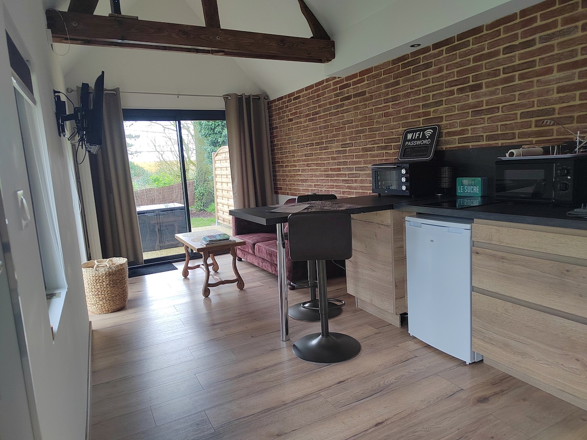 Ideally located to visit all the tourist spots of Normandy: between Etretat, Honfleur, Le Havre This cottage with refined decoration offers a master suite with jaccuzi, sauna and xxl shower, a bedroom with queen size bed, a large terrace, a bright living room with a sofa bed and a fully equipped kitchen. The cottage has everything you need to enjoy a moment of rest and relaxation. Private parking space Sheets and towels provided Coffee and tea offered