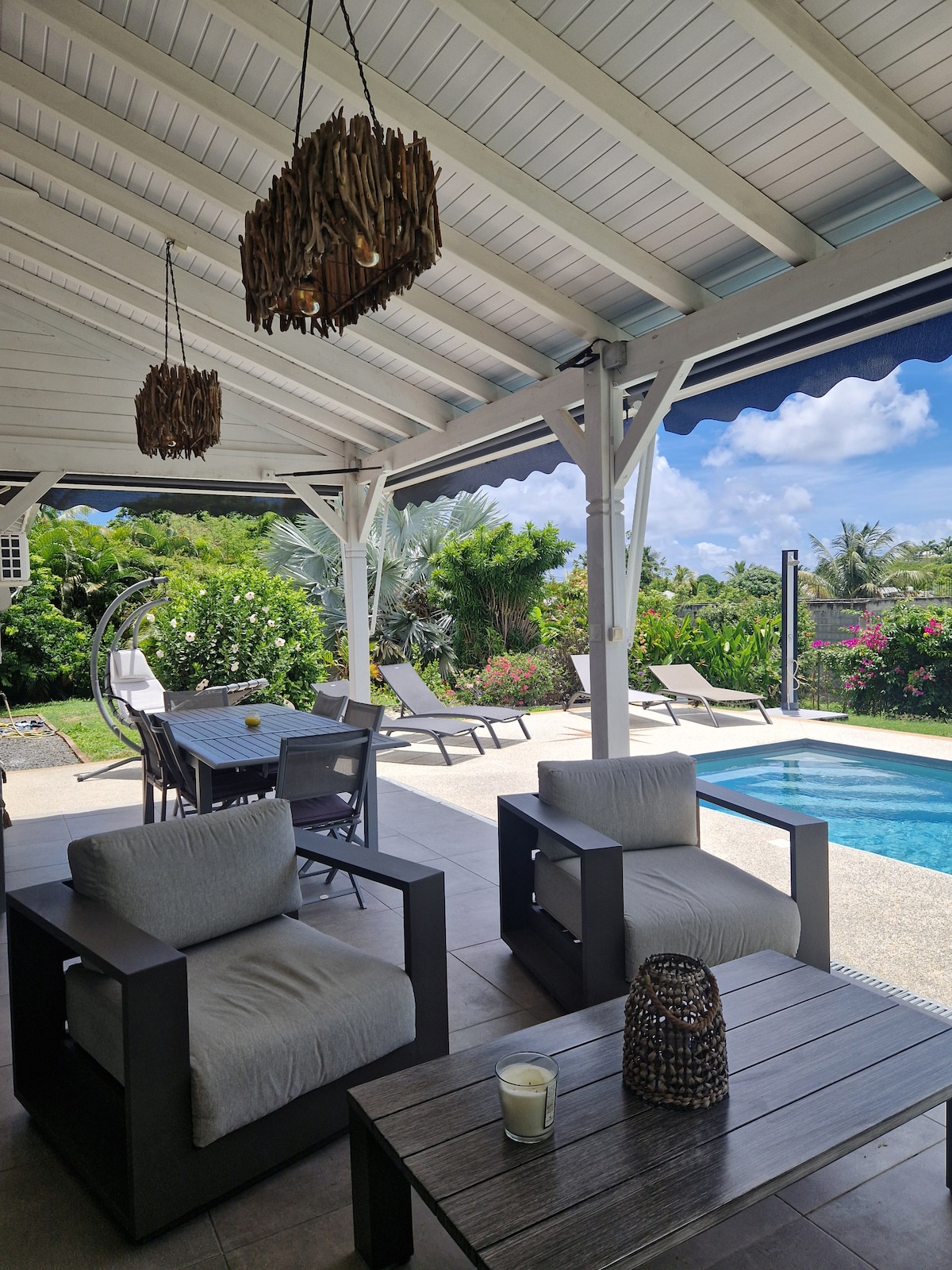 Venez vous détendre dans la magnifique villa toute neuve de Nolwenn et Gérard, alliance entre exotisme et modernité. Vous apprécierez sa vue mer et contemplerez les lumières de MARIE-GALANTE et même de la DOMINIQUE. Sa terrasse en deck et sa piscine privée perchée au sommet de la colline vous donnera une sensation d’évasion.🏖 Elle est idéalement située dans un quartier très recherché. La villa dispose d'une citerne d'eau potable afin de pourvoir pallier aux coupures d'eau. Nolwenn et Gérard🏖
