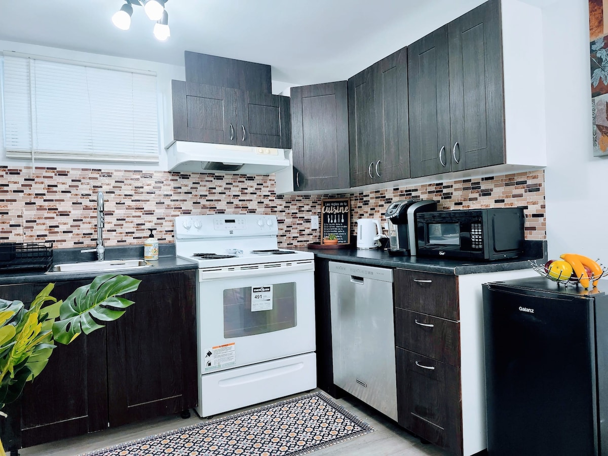 🛏️ Sleep Like a Dream – Plush queen-sized bed with hotel-quality linens. Rest easy after exploring Montreal. 📺 Netflix & Chill Ready – Smart TV with streaming apps. 🚿 Modern & Spotless Bathroom – 🍳 Fully Equipped Kitchen – Save $$ on dining out! Cook like a pro with all the essentials. 🚗 RARE FIND: FREE Parking! –Park for FREE. 🚀 Work & Play – High-speed WiFi + dedicated workspace for digital nomads. ✅ 14 mins to Downtown Montreal – Perfect for concerts, festivals, nightlife!