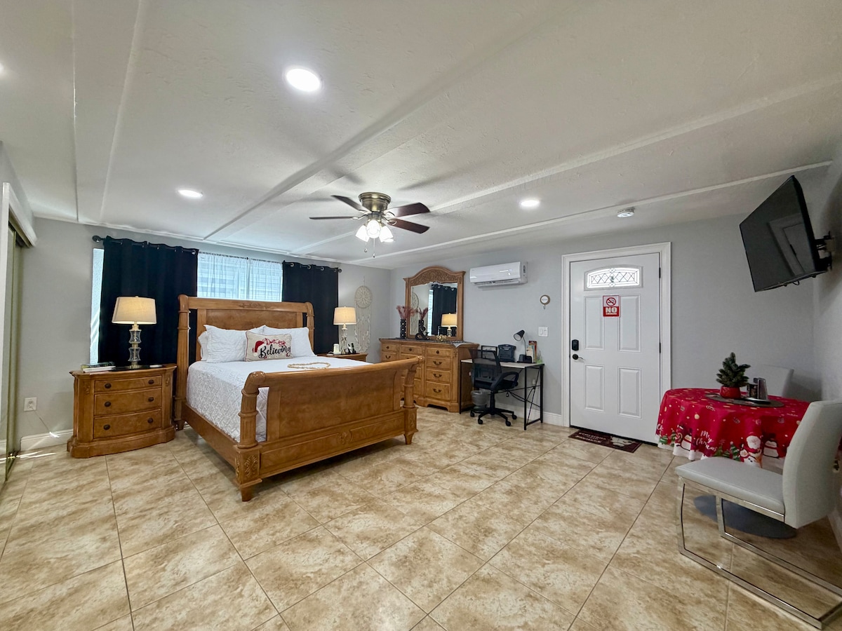 Kick back & relax in this calm, central and stylish space. Location,Location centrally located within 8 mins from Tampa's International Airport, 5 mins from Tampa's renowned Riverwalk and Downtown Tampa & Armature Works, 5 mins from Raymond James Stadium. Our goal is to provide our guests with a clean, safe, comfortable space they can call home while visiting our exciting city. Our newly renovated Apt includes a queen size bed, kitchen, full bath, wifi, private entrance & off street parking.
