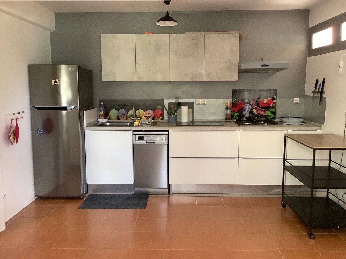 Small new house in the quiet countryside close to nature, 5 minutes from the HSE distillery 15 minutes from the Caravelle and the beaches of Tartane, the Caravelle hike 20 minutes from a river bath in the heart of Bouliki 10 minutes from the Royal jam factory.