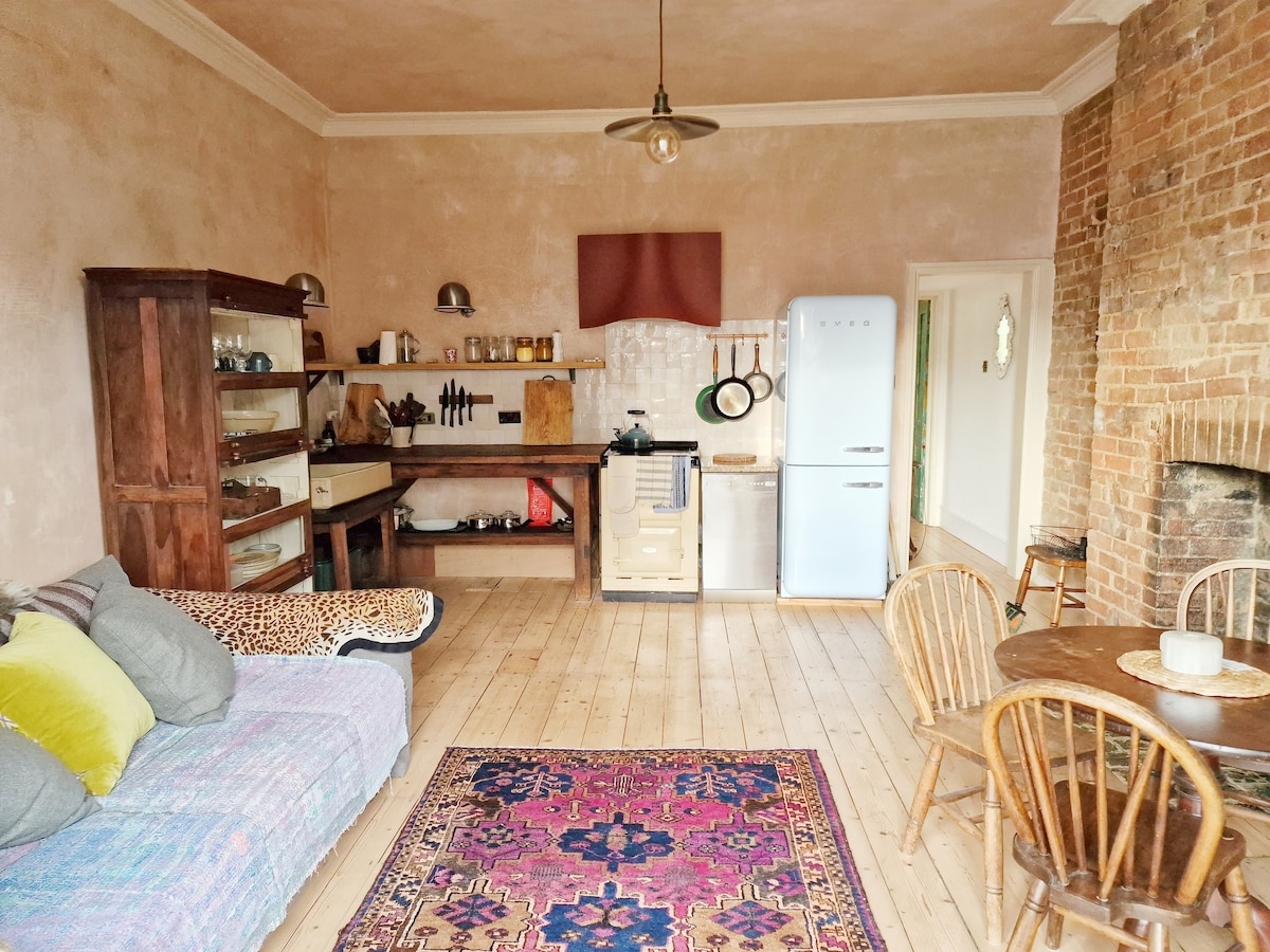 Bohemian Seaside Flat + Private Courtyard Garden