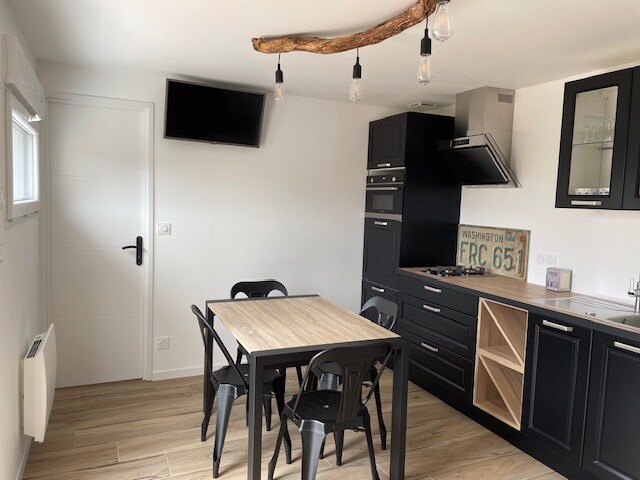 The accommodation consists of a living room of about 28 m² and a closed courette facing south of 9 m². It is heated. The bed is equipped with a very comfortable mattress! It has a TV and free Wi-Fi access. The kitchen is equipped with the essentials, fridge, induction cooktop, microwave. The toilet is separate from the shower room. Pods for the coffee machine are at your disposal. Linens and towels are provided.