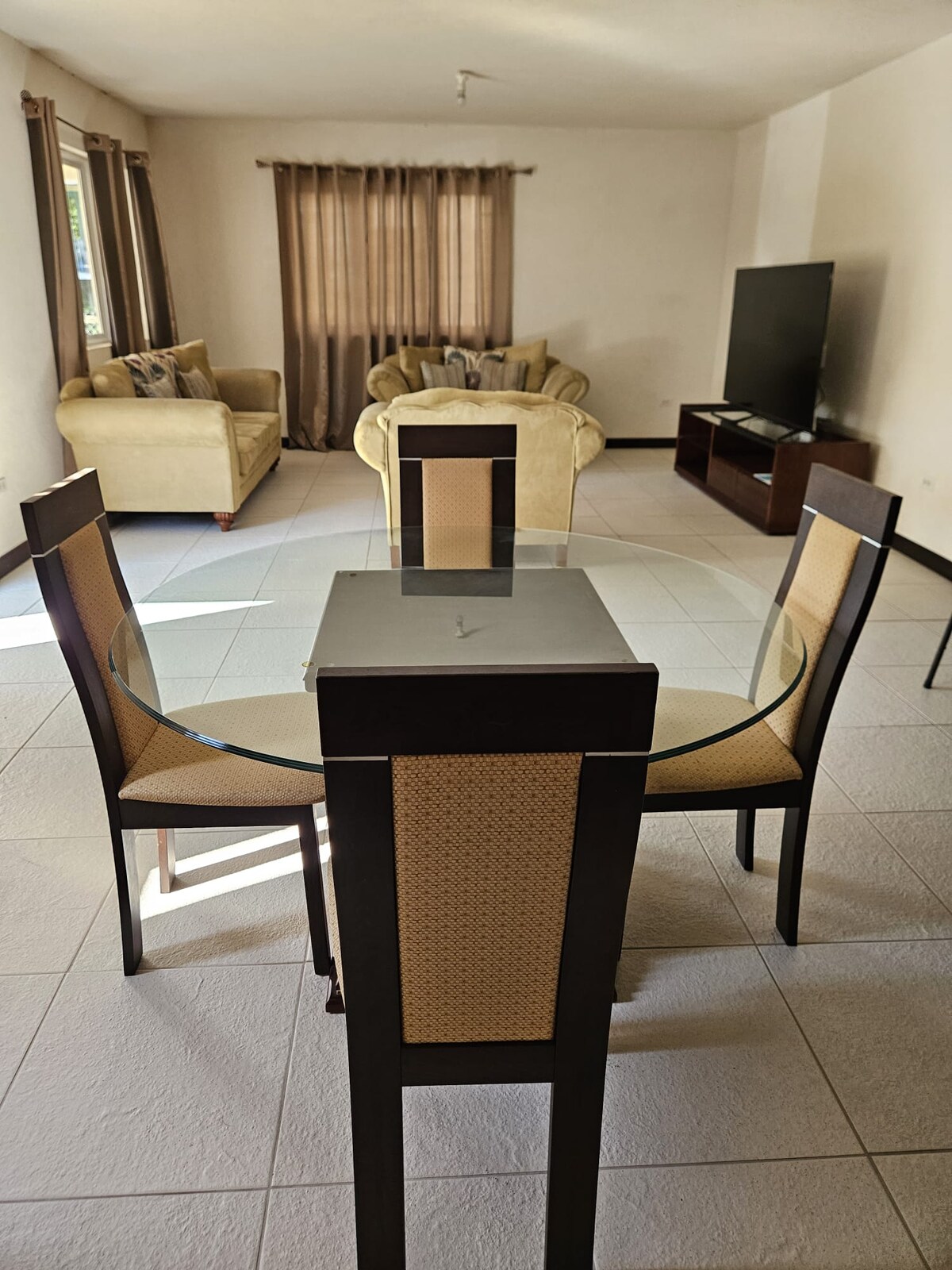Escape to this spacious 2-bedroom, 2-bathroom home tucked away behind The Rockley Golf Club. Perfectly located, you’re only a 3-minute drive to the South Coast with its restaurants, shopping, pharmacies, beaches, and nightlife. The famous St. Lawrence Gap is just 5 minutes away, while Oistins Fish Fry is only 10 minutes. The home features a bright open-plan layout with a large living room that seats 6, a formal dining area for 4, dedicated workspace and fully equipped kitchen.