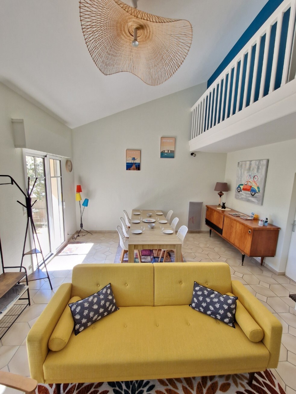 Kick back and relax in this calm, stylish space 200 m from the sea. 60 m² house, with a south-facing terrace not overlooked and a west-facing terrace to enjoy the setting sun. Fully fenced 450 m² landscaped garden, on a non-passing street, petanque court, close to amenities Spacious fully equipped kitchen, with direct access to a small covered terrace. Secure parking with electric gate.