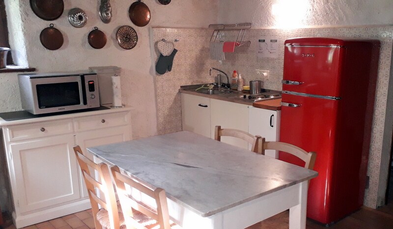 Renovated old farmhouse, on the edge of the forest 300 meters from the village in an isolated position, for lovers of the mountains and tranquility. Upstairs living room with sleeping area, downstairs kitchen and bathroom. Comfortable equipped garden. Extra cost of 15 euros per day for heating in cold seasons (I know it seems expensive, but it is due to the recent increases in the price of energy: the heating is oil-fired and is very efficient, with 5 radiators). Info: +39 333/3586171
