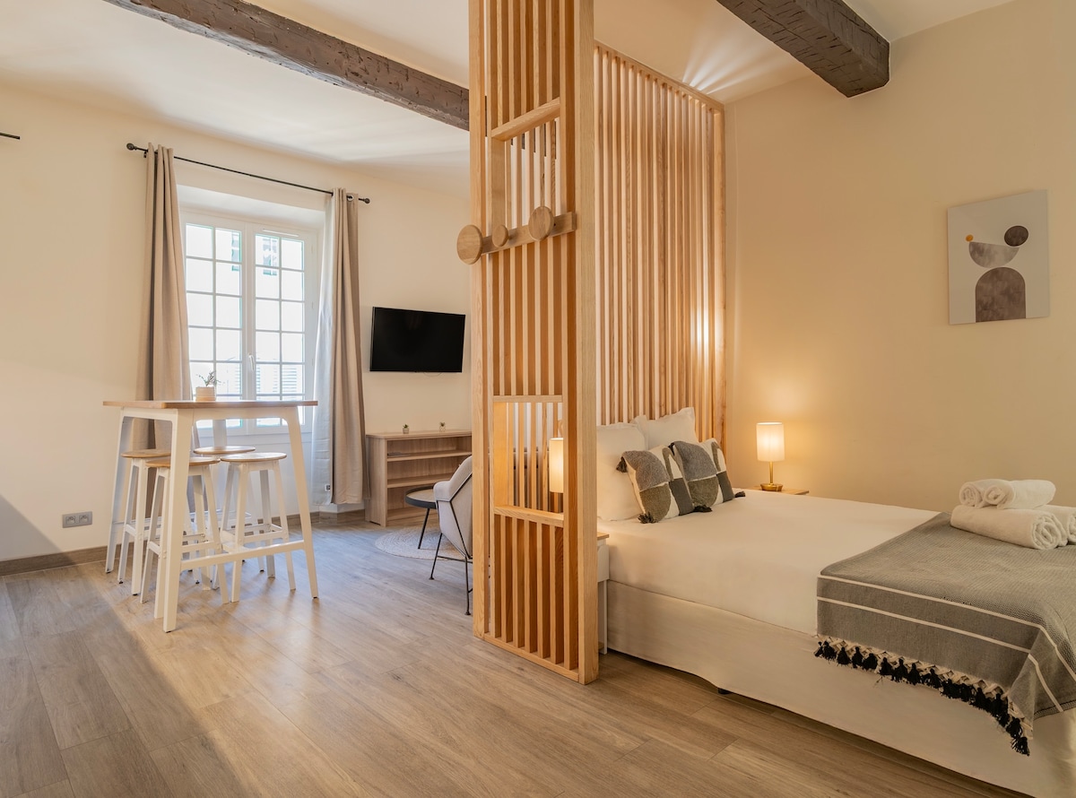 Mon appartement a été entièrement rénové début 2023! Je vous propose de séjourner dans un studio refait avec goût pour vos prochaines vacances dans le sud, à Port Grimaud. Avec vue vue imprenable sur les canaux , vous profitez du soleil dès le matin sur la terrasse puis aurez la possibilité d'aller vous promener et d'accéder à la plage qui est à moins de 10mins (800 mètres) à pied seulement de l'appartement. Une place de parking privative vous permettra d'être garé en face du studio.