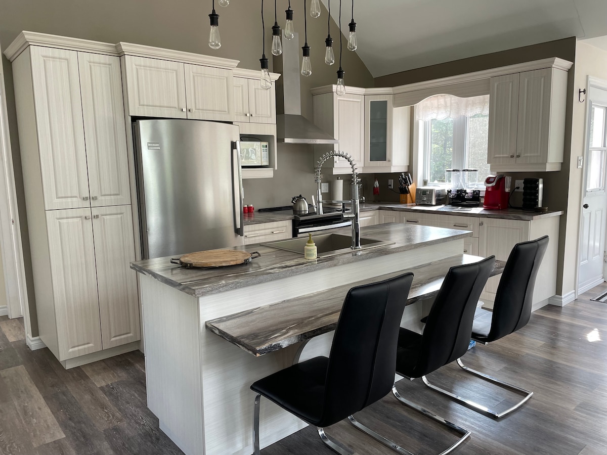 Located on the shores of the majestic Lac Saint-Jean, come and enjoy our small, functional and modern chalet. With an incredible view of Lac Saint-Jean and direct access to a private beach, you will be charmed for sure! You will have access to the Internet, Netflix, games, and lots of toys for kids. The cottage is fully equipped. Bring your belongings and groceries.