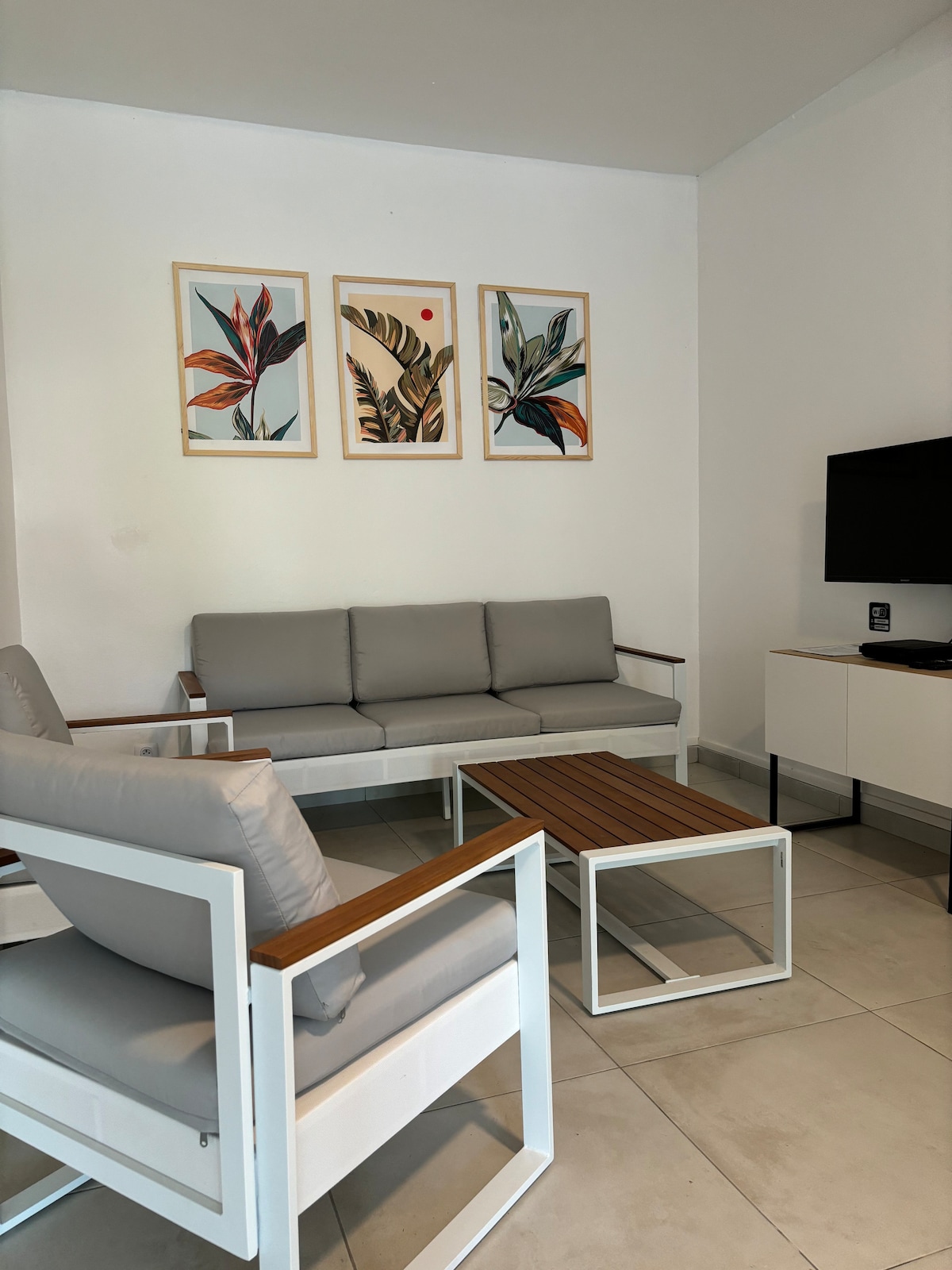 A stone's throw from the beach, apartment (100 m2) in Sainte Luce located on the ground floor in a secure residence and 300 m from the village in the quiet area of Gros Raisin. The Manamaca Lagoon accommodation offers sea views. You can get everywhere on foot. In the village, you will find small shops, local restaurants by the sea, but also a doctor's office, pharmacy, nurses and physiotherapist. You are very close to the main road axis serving Martinique from North to South.