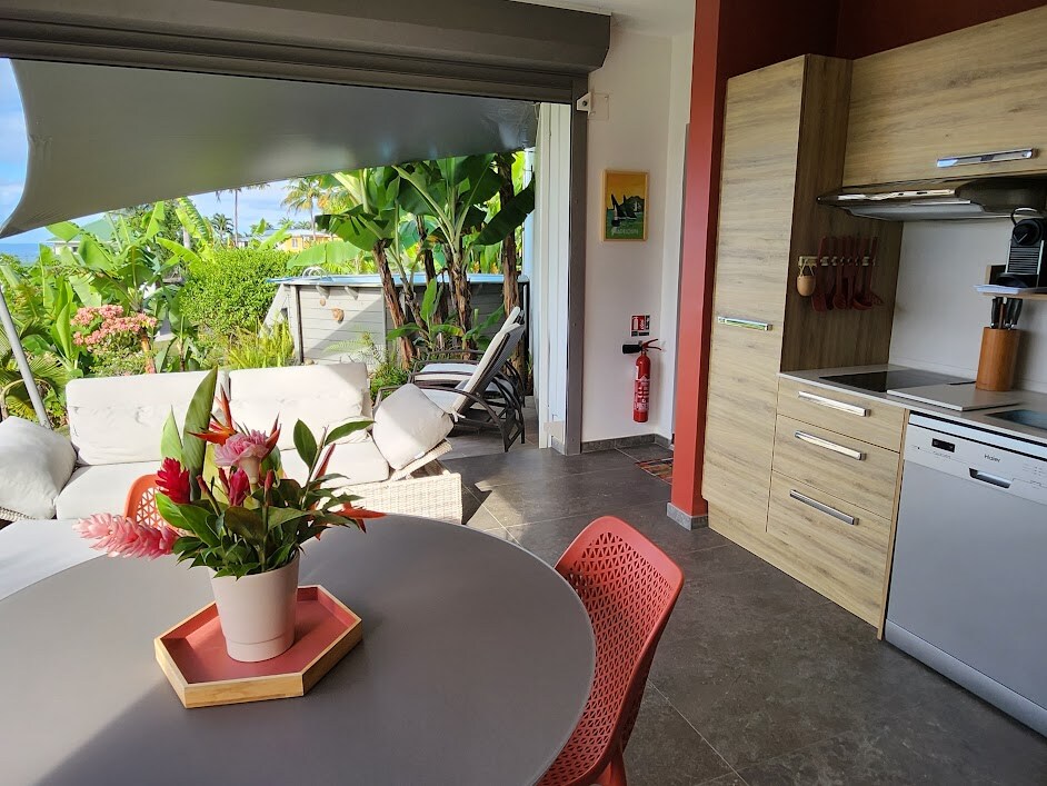Bienvenue dans notre villa créole authentique, idéale pour allier télétravail et détente .TÉLÉTRAVAIL WiFi fibre • Espaces lumineux • Calme absolu DÉTENTE Jacuzzi privé • Jardin tropical & verger • Terrasse pergola LOGEMENT Villa 6 pers • Climatisé • Cuisine équipée • Parking VERGER l Mangues, caramboles, corossol, goyaves, canne à sucre, bananes selon saison EXPÉRIENCE Alliance parfaite entre productivité et art de vivre créole