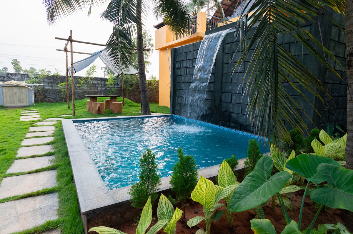 Away from the hustle and bustle of city life, MIDORI is just 1 hour drive from chennai. Its a luxury farm villa with a swimming pool. Each and every article in the property has been carefully designed and created to give it a unique touch making your stay memorable in many ways. Midori is a culmination of luxury and art coming together. Consists of 2 villas of 1200+ sq feet space having its own air conditioned living, sit-out, upper deck and large BR with an open bath.