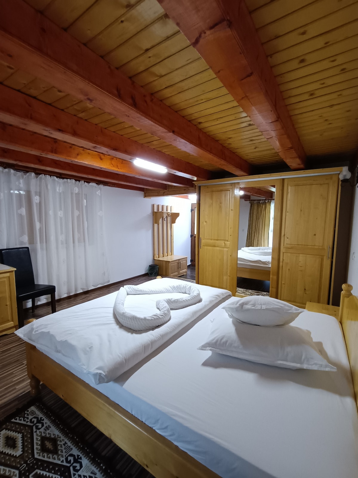 Descoperă magia Munților Apuseni într-o cabană intimă, unde confortul se îmbină cu aventura. Situată la 917 metri în Valea Largă, Sălciua, Black Wolf oferă spațiu pentru grupuri mici, cu 2 dormitoare (paturi duble 200×160 cm), 2 canapele extensibile (200×160 cm), baie privată și bucătărie utilată. Acces la foișorul comun pentru socializare. Perfect pentru familii mici sau cupluri care caută intimitate și calitate. Unitatea include o zonă comună cu saună, jacuzzi și ciubar.