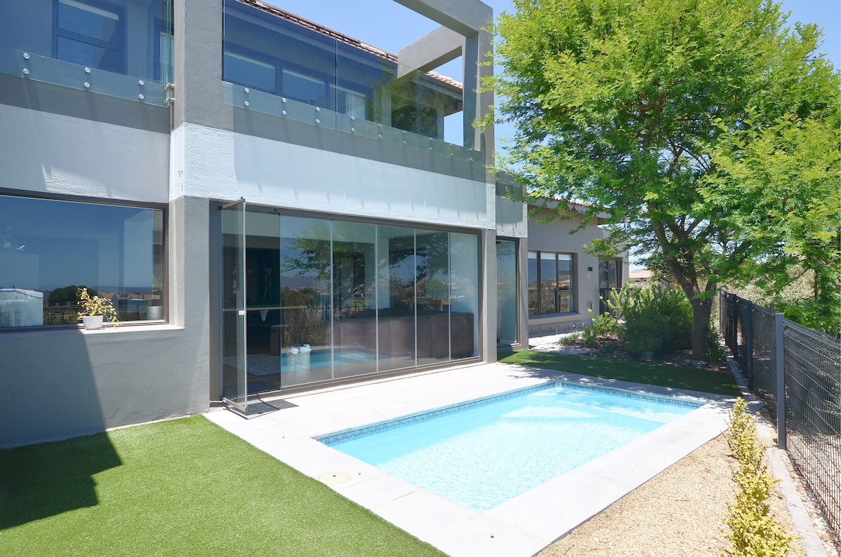 Exclusive Serenity Meets Adventure: Luxe Golf Estate Home with Nature, Sports & Uninterrupted Comfort" Nestled within a prestigious golf estate, our home is an oasis for those who cherish outdoor activities and refined relaxation. Embark on expansive running and cycling trails or drive just 10 minutes to bask in the sun at the main beach and its immaculate lagoon. Our reliable backup systems provide uninterrupted comfort, making load shedding a worry of the past.
