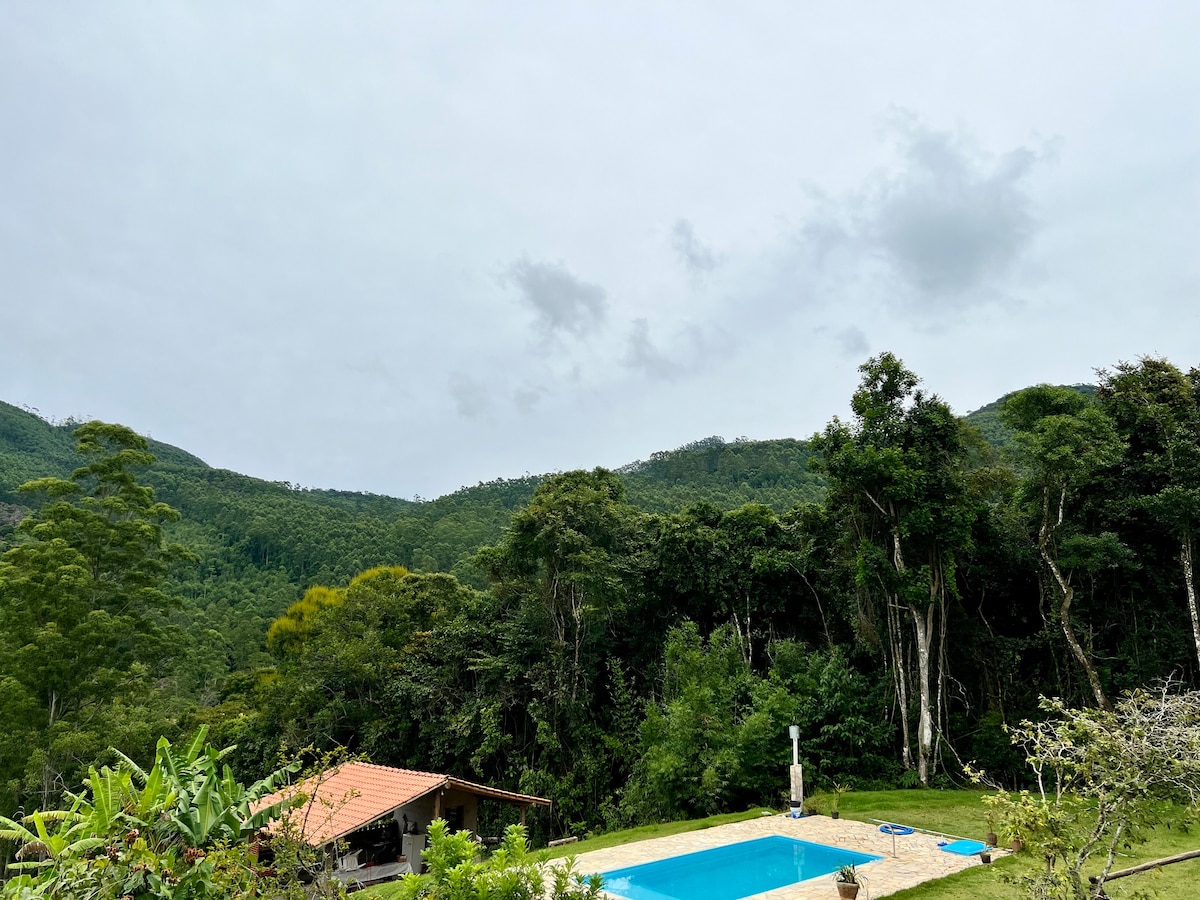 ALTO DAS TOCAS is a simple refuge in the exquisite Atlantic Forest, cozy and perfect for your stay. The perfect place to recharge, whether you're taking a hot shower overlooking the forest, reading in the garden or cooking on the outdoor patio. The house accommodates up to 4 people with great comfort and convenience. It has a bedroom suite, two beds (one super king and one pull-out bed), bathroom, full kitchen, bed and bath linen, parking and WI-FI.