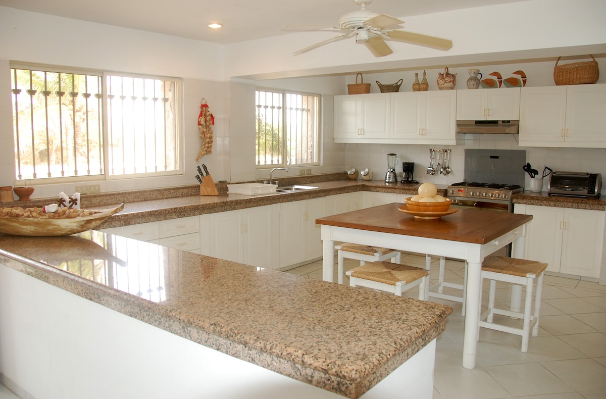 Directly on the beach, this home is located in a private, guarded community. Perfect for families or groups of 10 adults whiling to have a relaxing vacation. With the ocean in front, you will see beautiful and colorful sunsets everyday. The beach is never crouded, because there are only few other houses nearby. We include clean linens, bathroom supplies and full equiped kitchen. For an additional value, we can offer a private chef, chauffeur and maid.