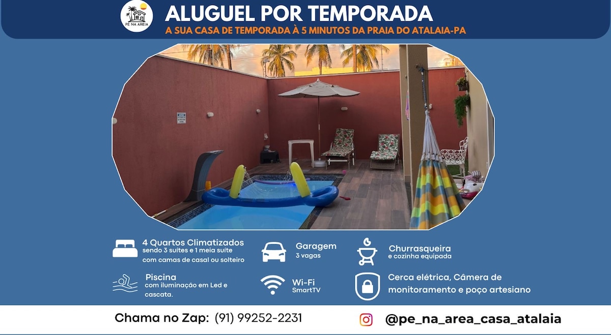Esqueça de suas preocupações neste lugar espaçoso e tranquilo há 3 quadras da praia do Atalaia em Salinas Pará, com estacionamento privativo para 4 veículos, 4 suítes, máquina de gelo para drinks, cervejeiras e piscina com hidromassagem, ideal pra quem quer curtir ou descansar.