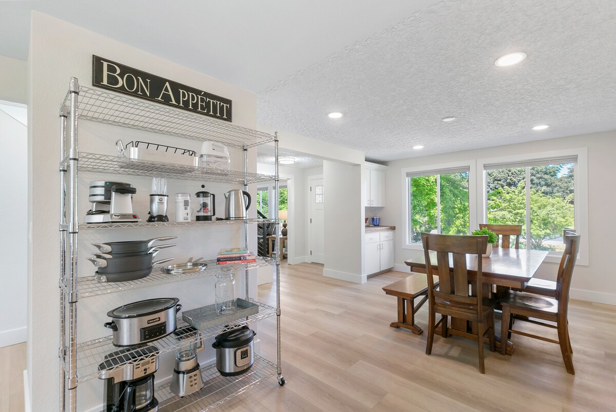 Enjoy a luxury space, with many amenities. Perfect for any occasion. Pacific Northwest touches and modern details with an open luxurious layout. Perfect for a laid back stay with family. Easy access to both freeways, near main attractions! This one level ranch is tucked away in a quiet little neighborhood. An amazing space to relax with friends and family. Near by parks and ponds perfect for morning strolls and connecting with nature right in the city limits!