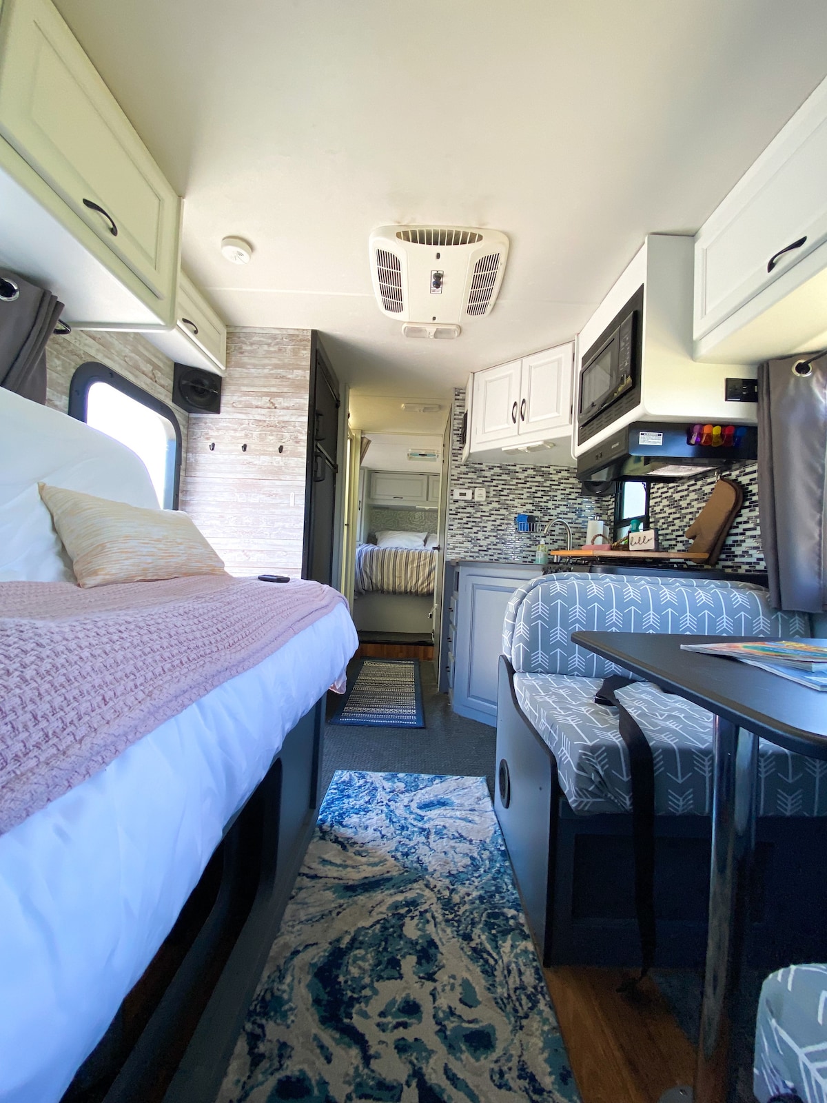 •Flat screen smart tv and surround sound (Compatible with Netflix, Hulu, Xfinity and more) • Bluetooth Touchscreen & DVD Player (Connects to tv so you can watch tv and lounge) •Speakers & Subwoofer inside and outside of the rv •Color changing outdoor lighting •Lots of storage •3 Queen Beds •Shower •Remodeled full bathroom •Pull out rooftop sunshade •Built in generator/full hookup connections •AC/Propane Heater •Microwave/Stove/Kitchen Supplies