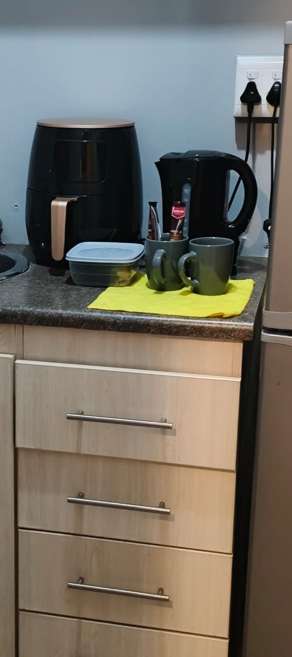Stella's Gem is a selfcatering accommodation located in Kimberley . Close to hospitals,malls and schools. The air-conditioned accommodation offers a modern spacious unit with a queen size bed.A kitchen with a kettle,microwave and a fridge.Flat-screen TV, with full Dstv package. Seating area aswell as a breakfast area and enjoy a modern spacious walkin shower. On-site covered private parking. NO LOADSHEDDING.