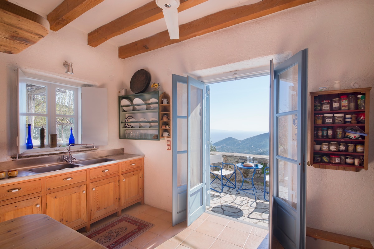 Traditional, rustic house near Leonidio with beautiful beaches nearby. Situated at the end of a quiet village, this house offers scenic views to the sea below and the adjoining mountain. If you feel like unwinding, writing, painting, meditating, walking, swimming and looking at the starry sky, this is the place for you. If you feel like a party, it's not. It's situated 3-3,5 hours from Athens airport and it's easier to have a car.