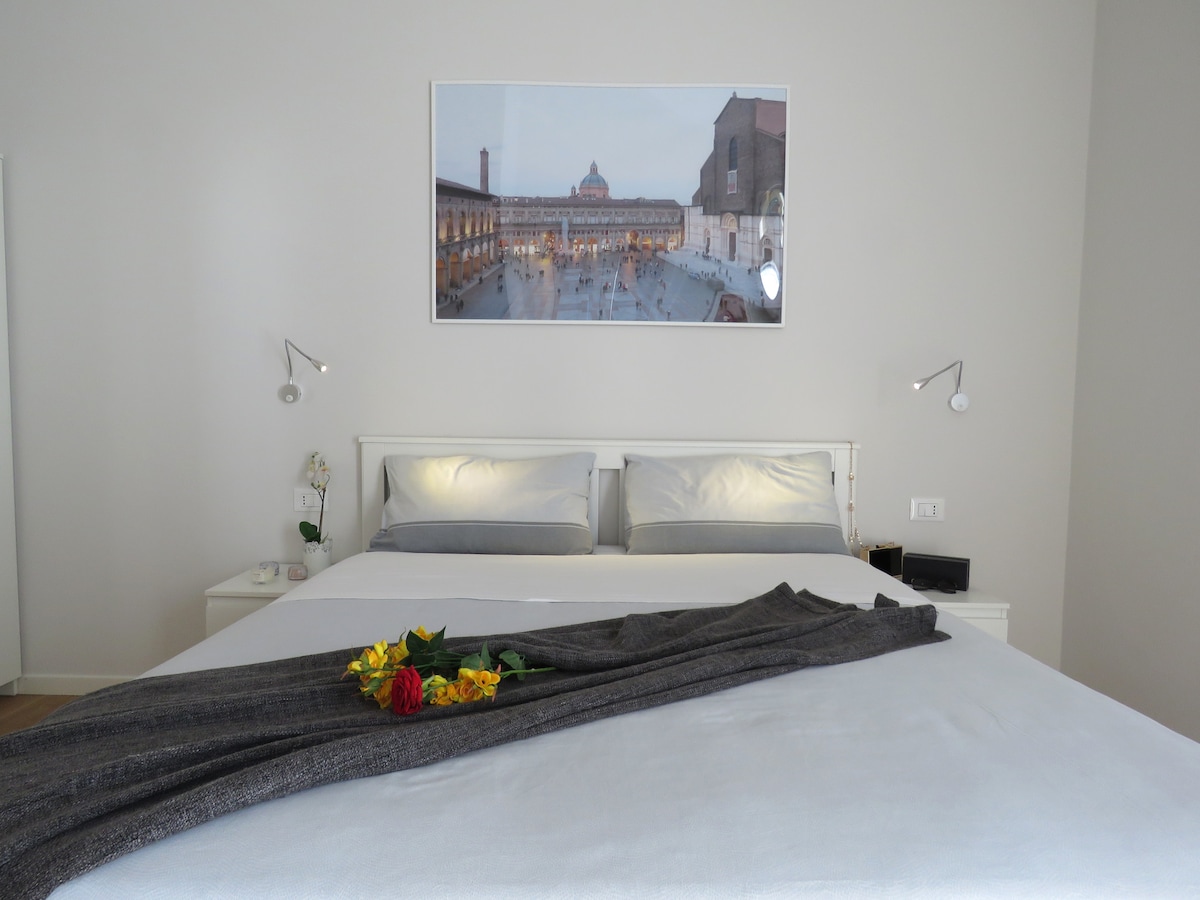 Tranquillo e confortevole appartamento su 2 piani di 100mq con terrazzo, situata nel cuore del centro storico. A due passi da Piazza Maggiore. Lo stabile è situato all'ultimo piano con ascensore. Composta da zona giorno open space con cucina, 2 bagni e una camera da letto con letto matrimoniale. Servizio autobus comodo da/alla Stazione ferroviaria, navetta aeroporto e autobus per la Fiera. Stupendo terrazzo con vista sui tetti e chiese bolognesi. Un vero angolo suggestivo dove sentirsi a casa