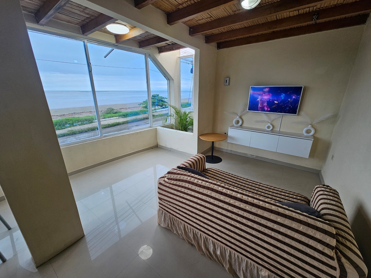 This beautiful suite is located right in front of the ocean with direct access to the beach and a swimming pool. Whether in your suite, in the pool, or on the beach you will hear the relaxing sound of ocean waves and enjoy magnificent sunsets. The property is located in a quiet area, a 30 minute walk, or 5 minute car ride to Canoa. Our English and Spanish speaking on-site caretaker is here to help you with any questions about the property or the area.