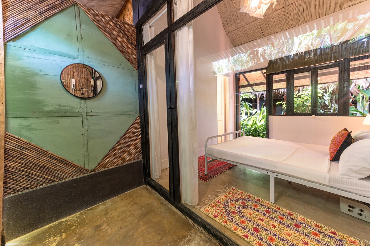 A cozy and homey space just 1 minute from the beach. This house includes: – Small kitchenette (rice cooker, kettle, fridge, single electric stovetop) – Private bathroom with hot water – Window-type aircon + electric fan – Rechargeable bedside lamps – A small speaker with a mic – A cozy bed (190x120 cm – best for solo travelers or close couples) – Surrounded by green plants and good vibes We live nearby and are happy to help with anything. Come as you are and enjoy island Life.