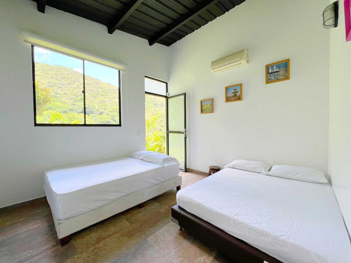 Villa Mary is a beautiful country house located in the municipality of San Jerónimo, Antioquia. The drive to our villa is 50 minutes from Medellín to San Jerónimo, and 12 minutes from the town park to the Villa. Our accommodation is ideal for resting, relaxing and enjoying nature. You will find everything you need for a comfortable stay, in addition to enjoying the sun, the breeze and appreciating its beautiful views of the mountains and the valley.